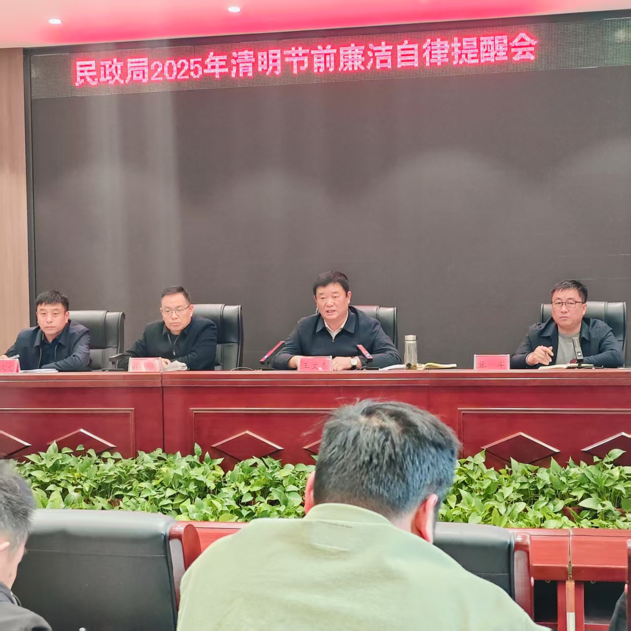 2025年4月3日下午3点,民权县民政局在局一楼会议室召开2025年清明节前廉洁自律提醒会。会议由民政局党组书记、局长王文杰主持。