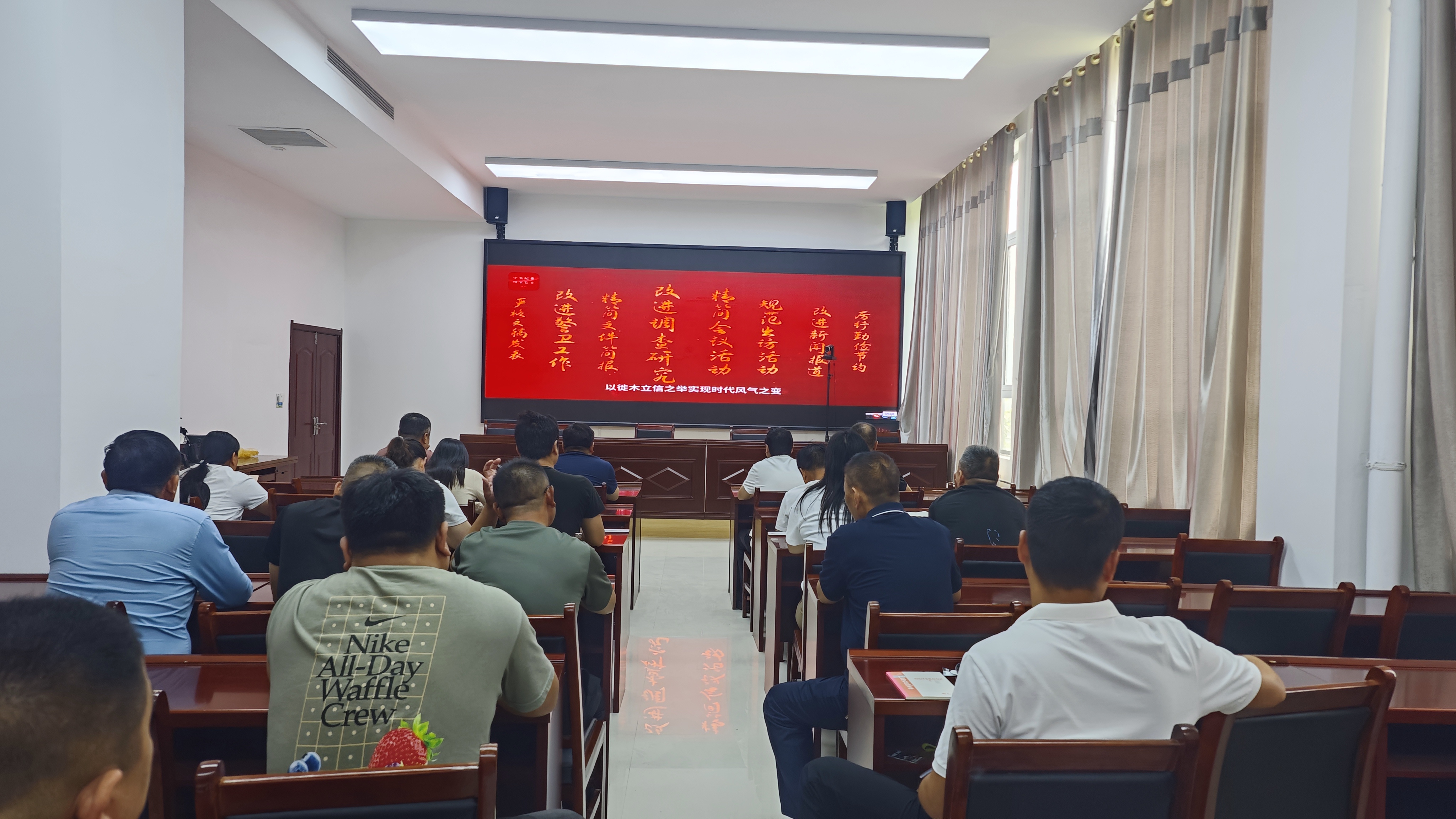 会上,全体干部职工集中观看《八项规定改变中国》系列视频,引导全体干部职工始终保持清醒头脑,坚定理想信念,以优良作风推动商务事业高质量发展,为商务建设提供坚实的思想保障和纪律保障。