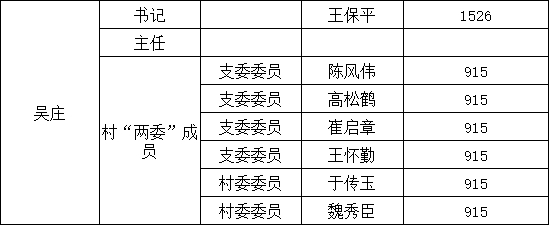 2018年绿洲街道吴庄村村干部工资表一览表