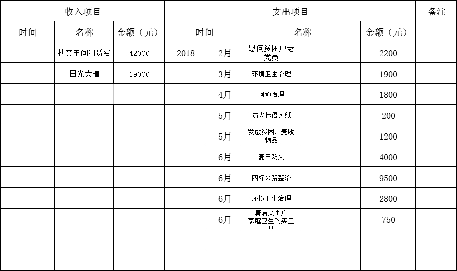 2018年绿洲街道亓堂村账目收支情况一览表