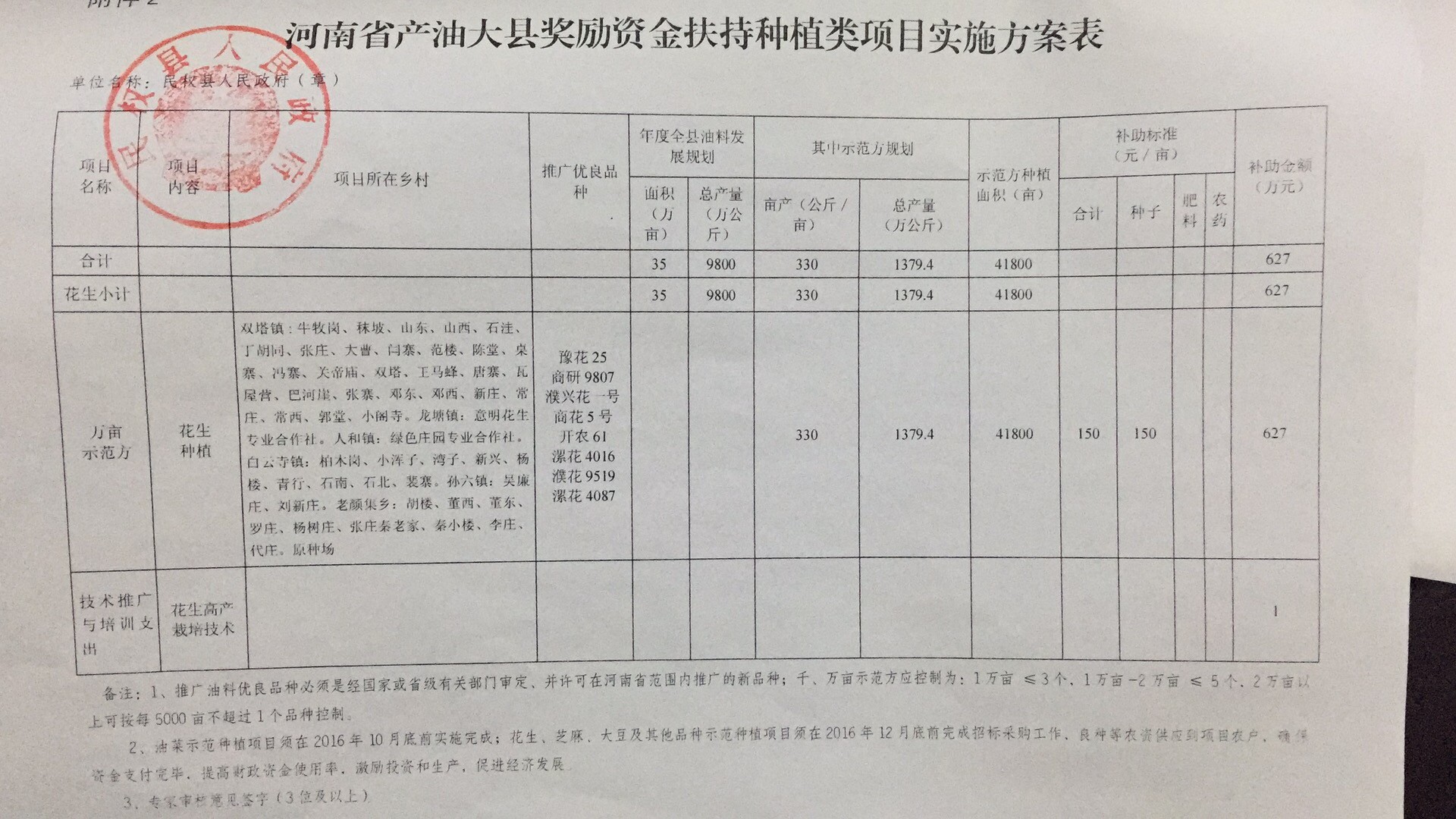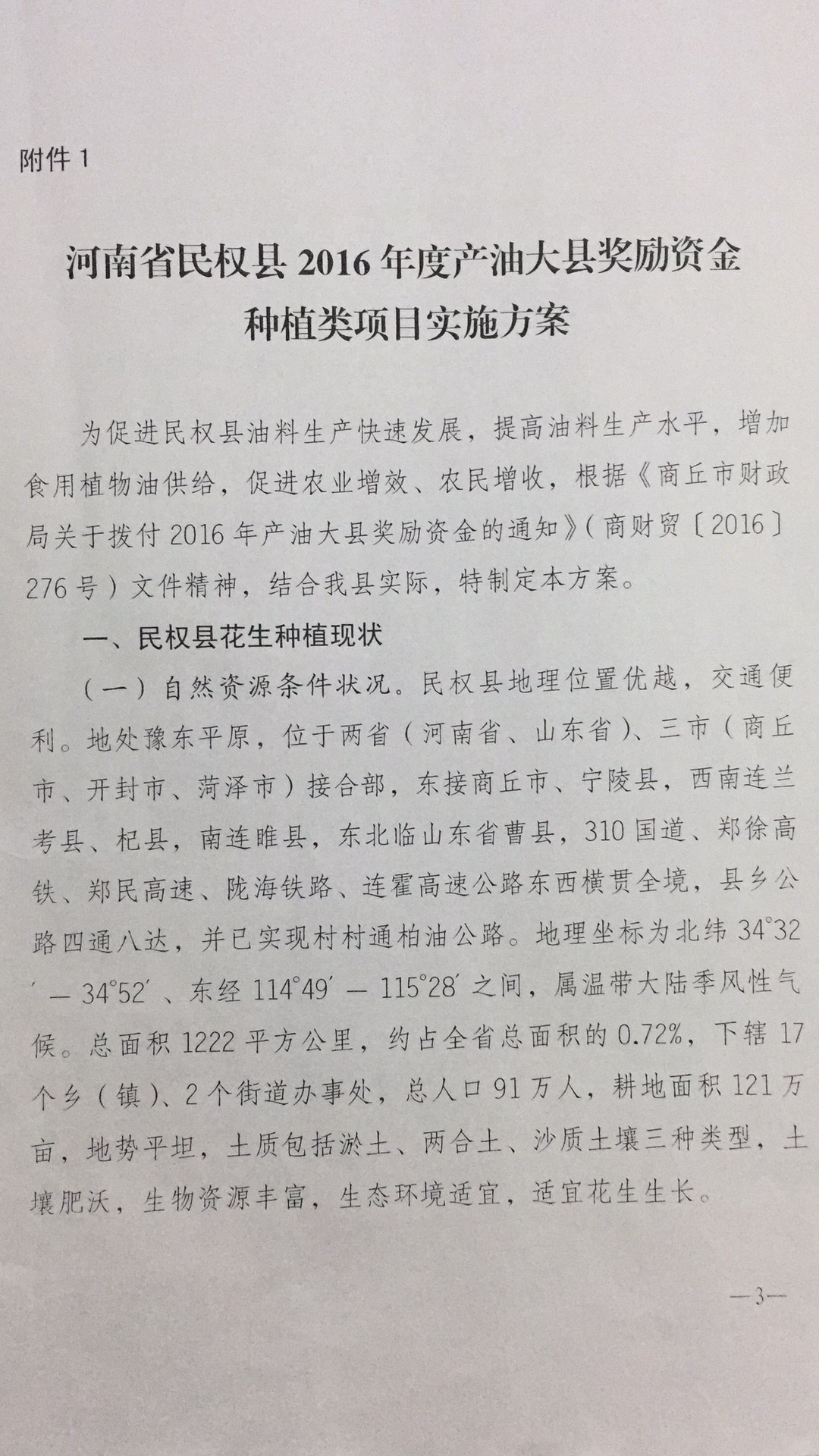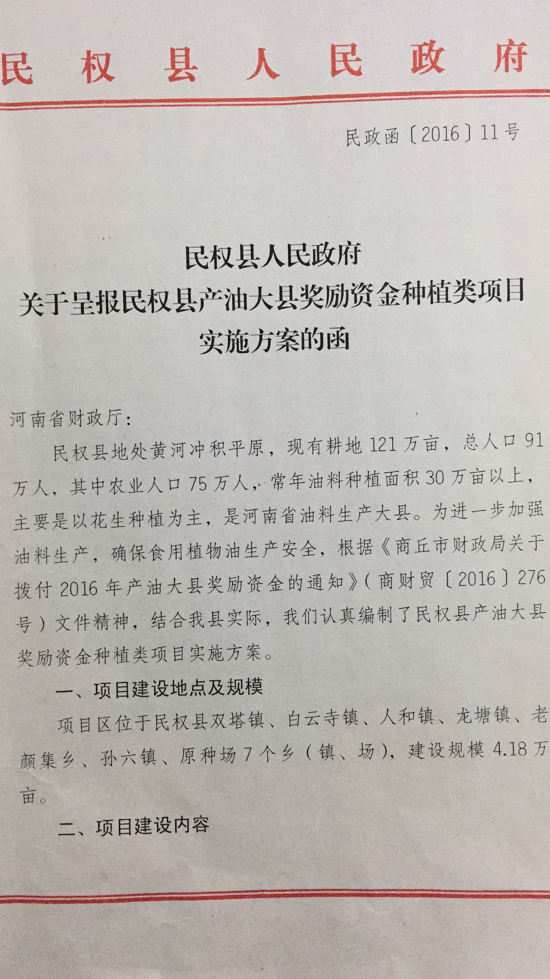 关于呈报民权县产油大县奖励资金种植类项目实施方案的函