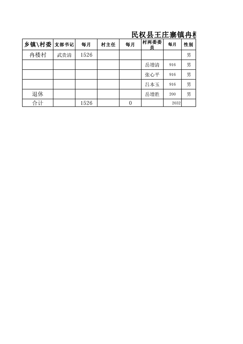 民权县王庄寨镇冉楼村2018年第四季度村干部工资表