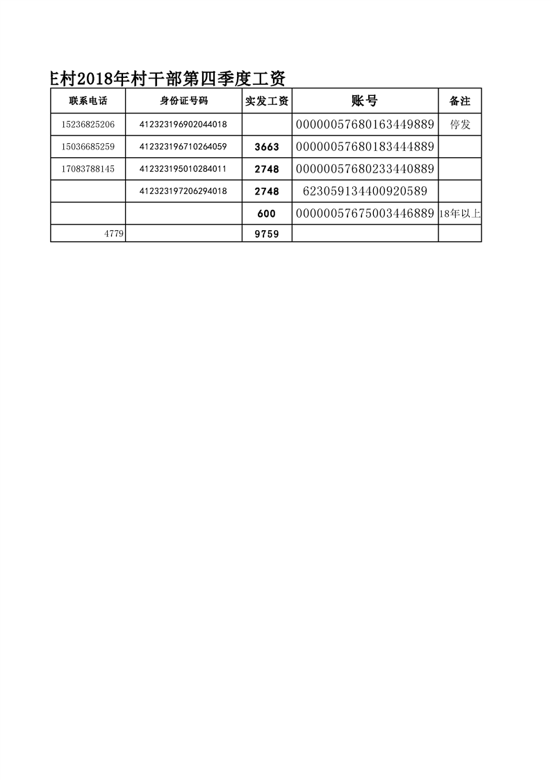 民权县王庄寨镇杨庄村2018年第四季度村干部工资表