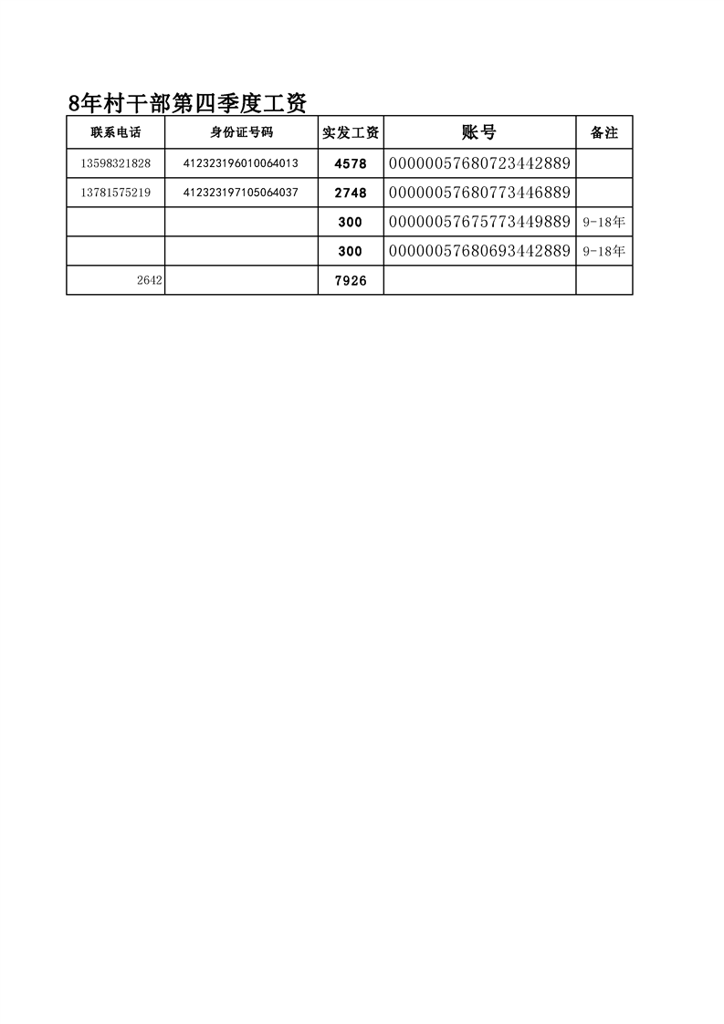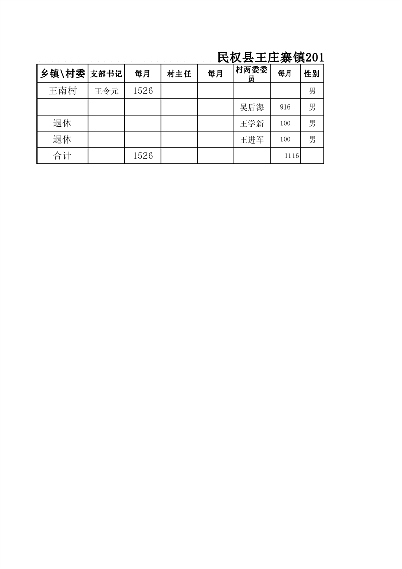 民权县王庄寨镇王南村2018年第四季度村干部工资表