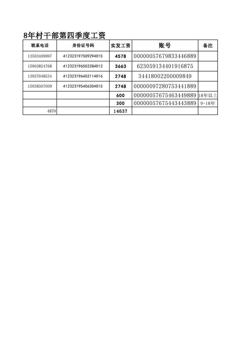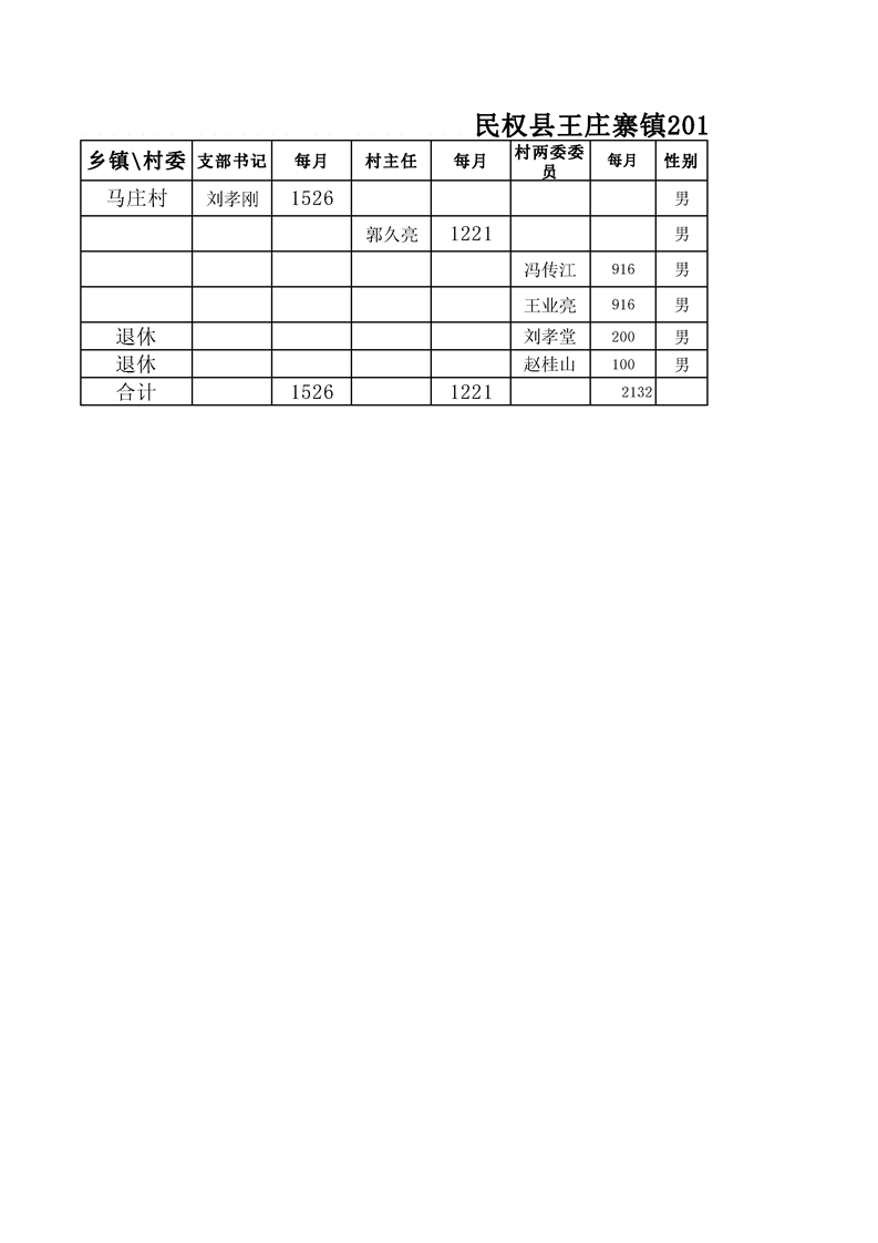 民权县王庄寨镇马庄村2018年第四季度村干部工资表