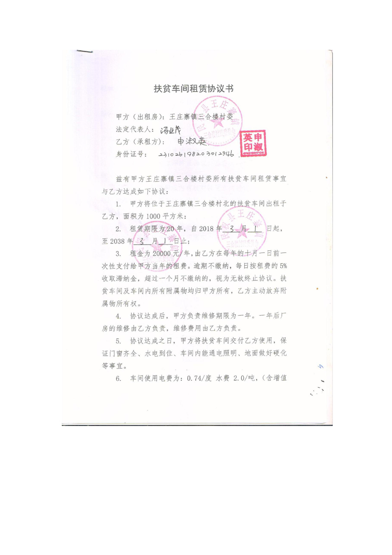王庄寨镇扶贫车间租赁情况公示