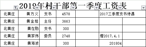 北黄庄村2019年村干部第一季度工资表