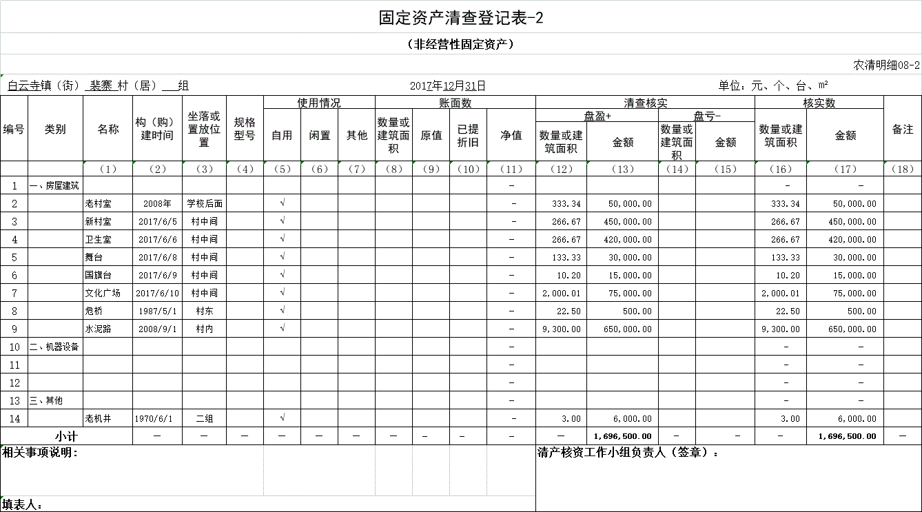 裴砦村固定资产清查登记表-2
