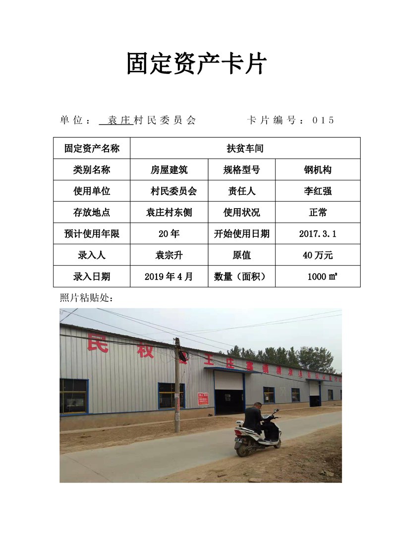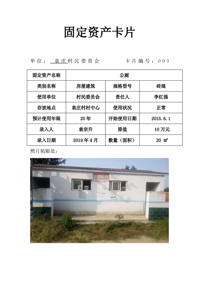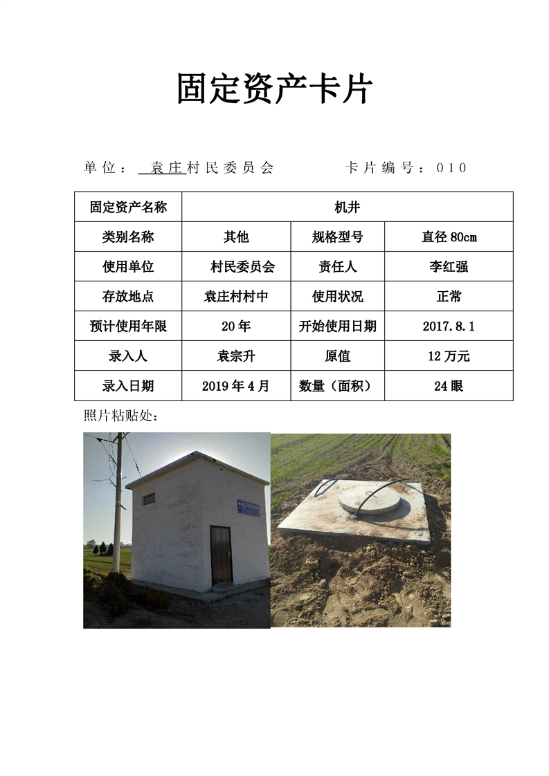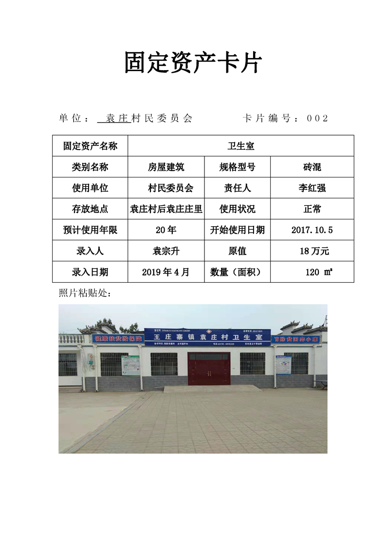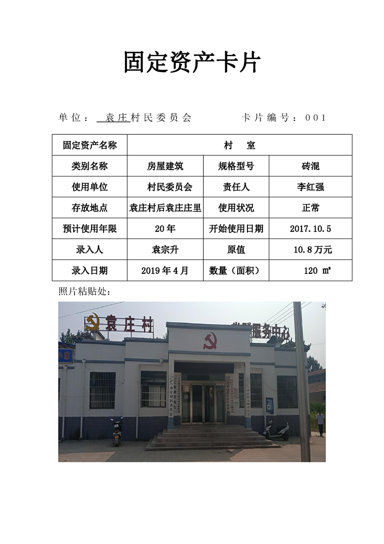 民权县王庄寨镇袁庄村固定资产卡片