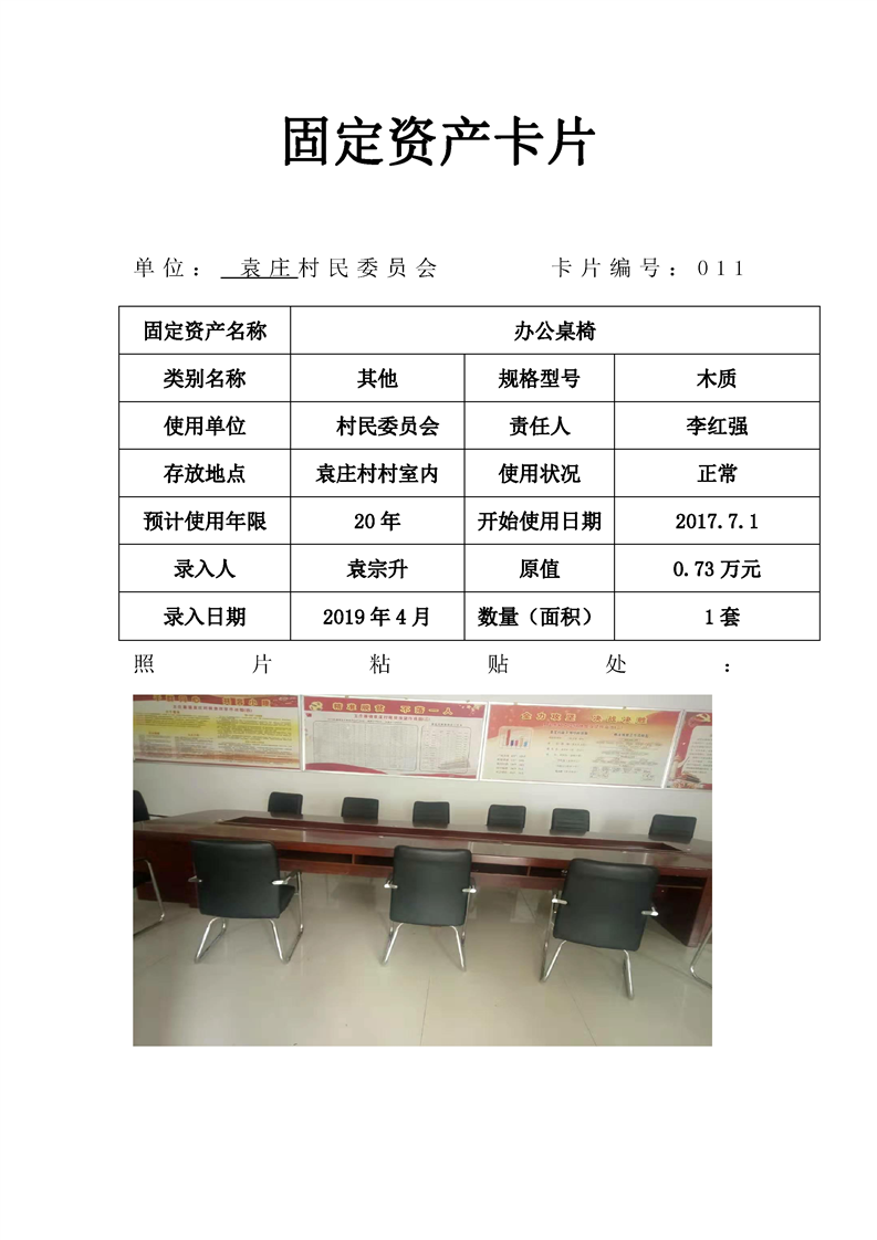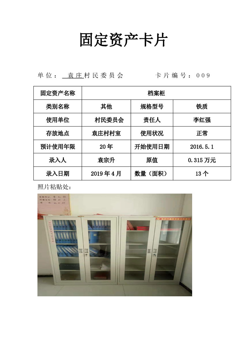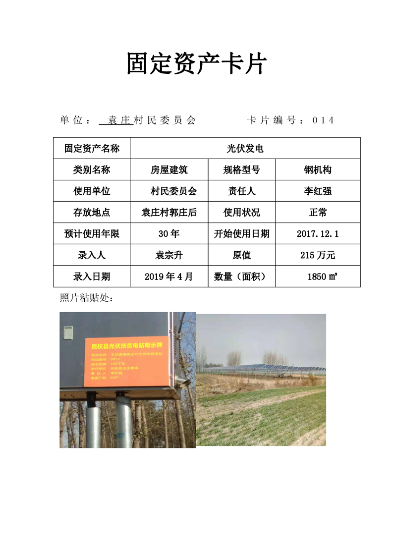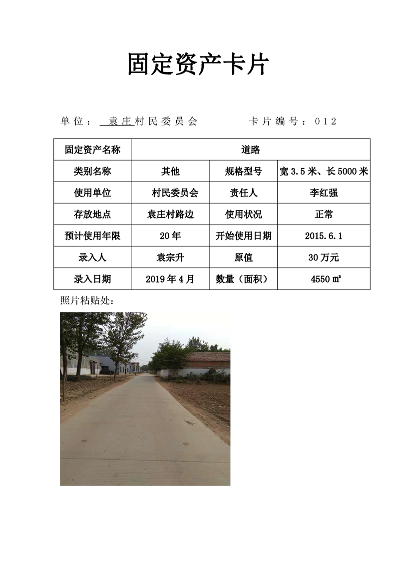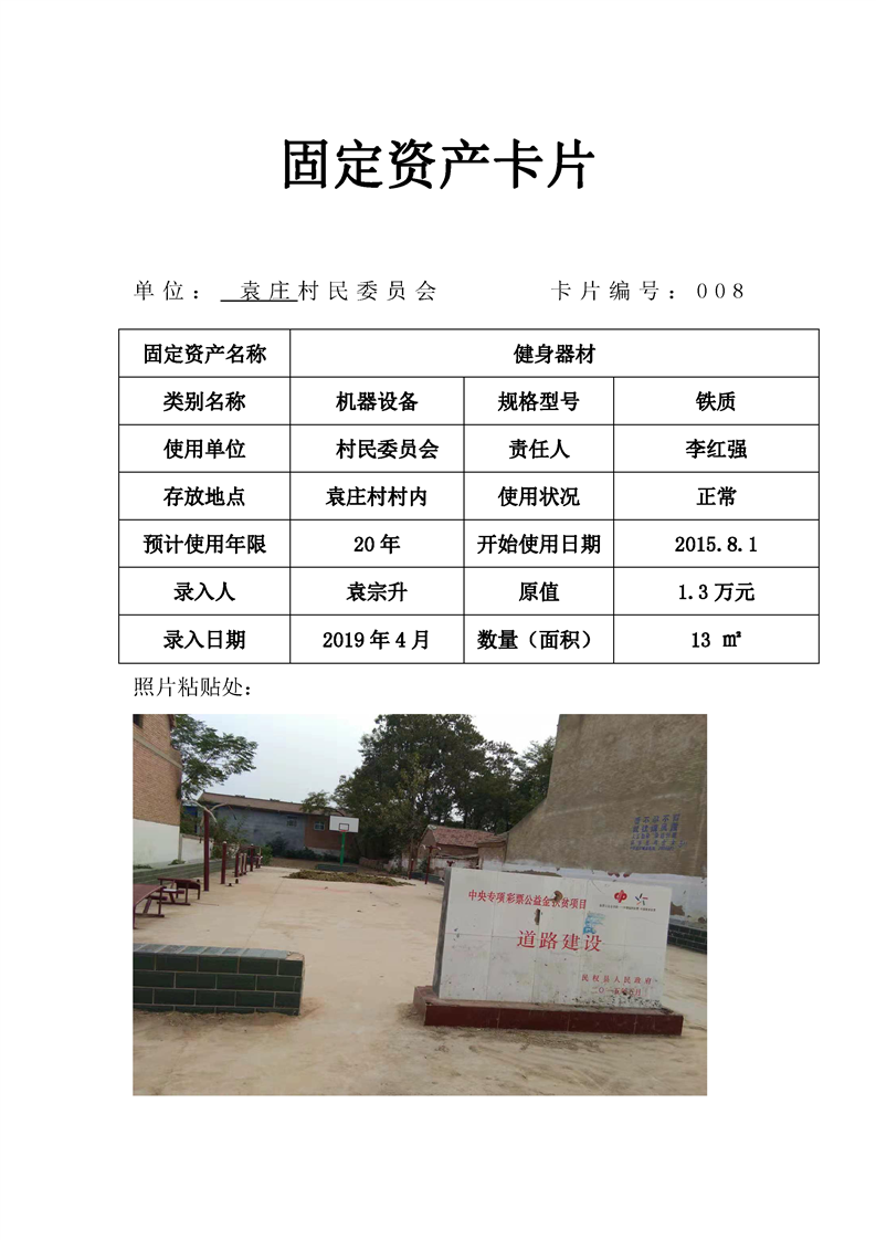 民权县王庄寨镇袁庄村固定资产卡片