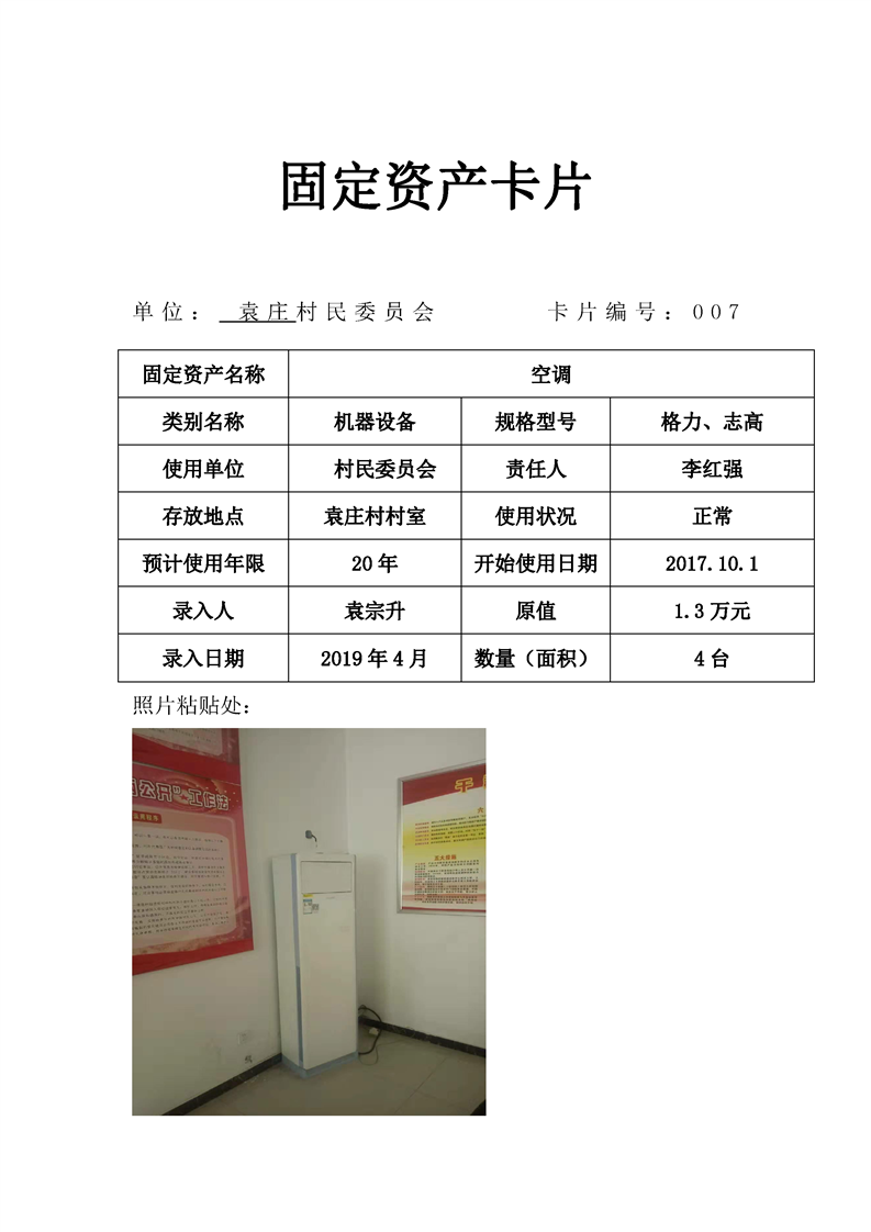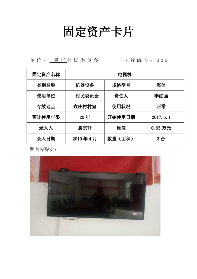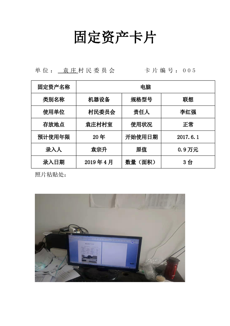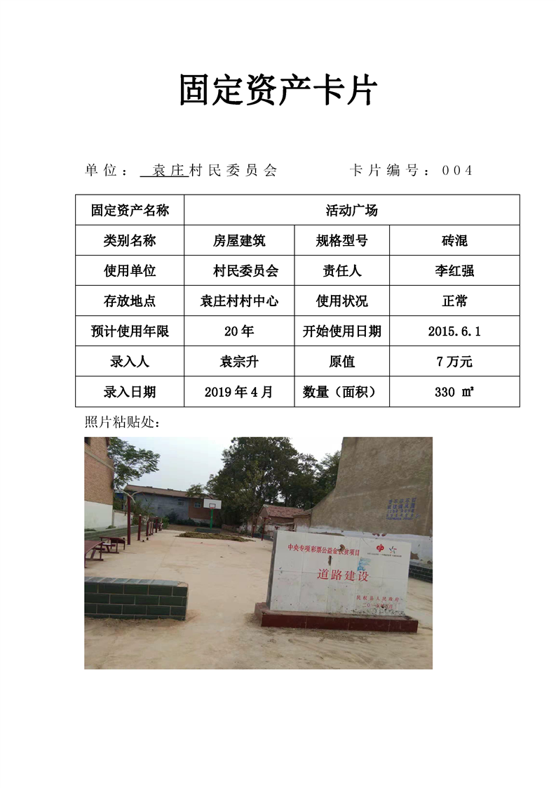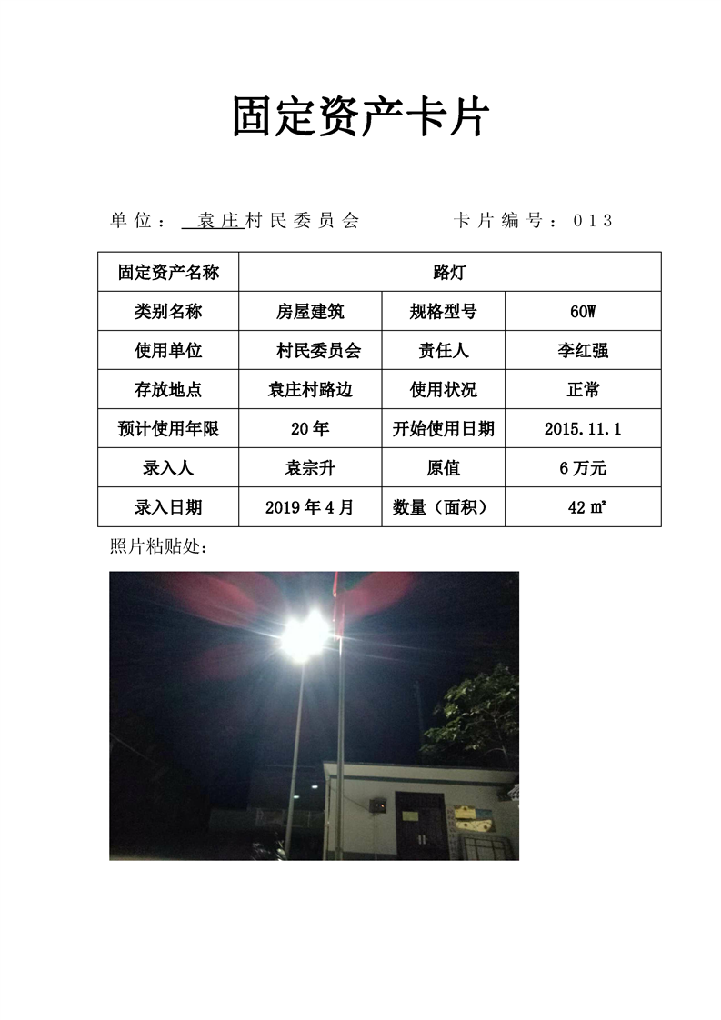 民权县王庄寨镇袁庄村固定资产卡片