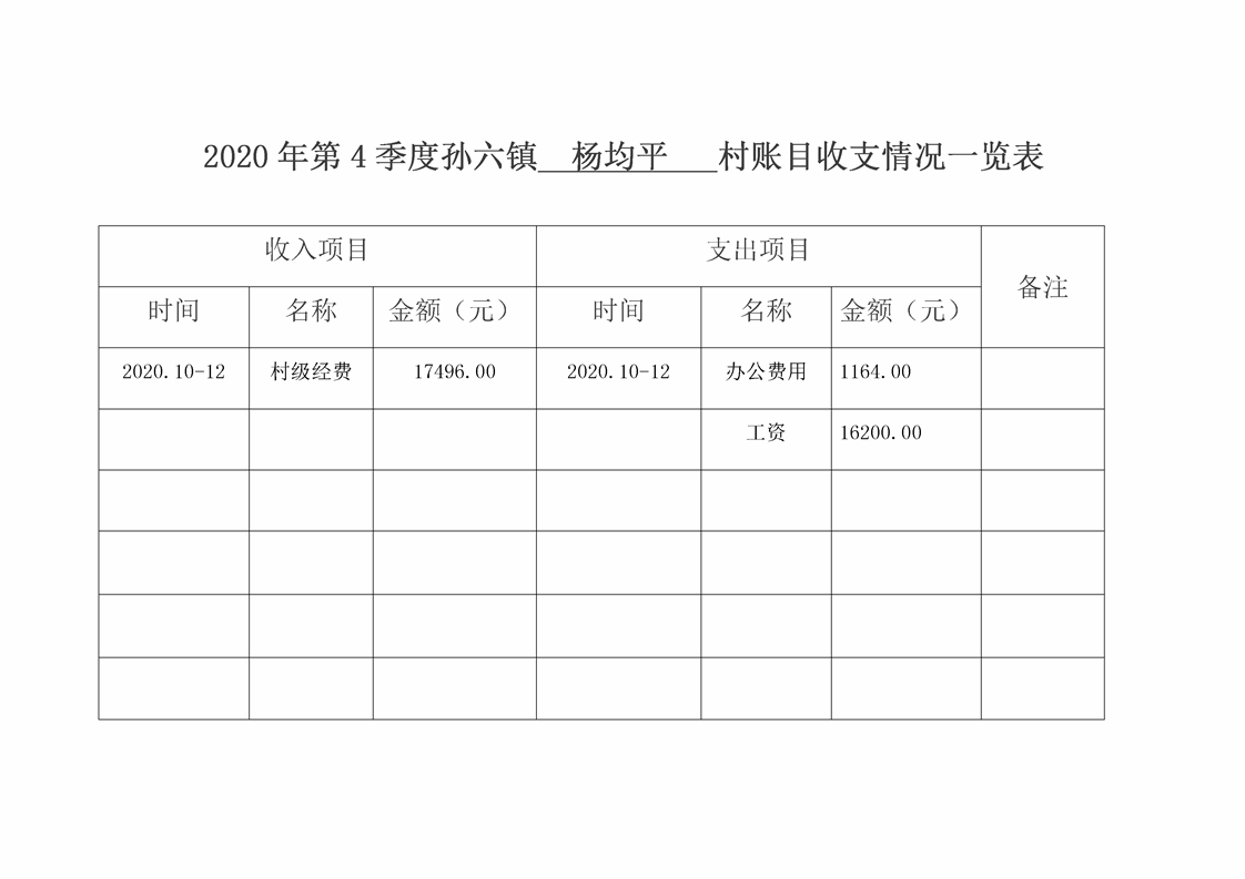 2020年第4季度孙六镇 杨均平 村账目收支情况一览表